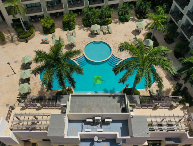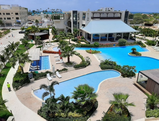 This stunning 2-bedroom, 2-bathroom condo offers a prime location in the high-rise hotel district of Palm Beach, Aruba, located on the 5th floor of the Acqua Condos Tower. With panoramic views of the pool and ocean, the unit combines modern living with resort-style amenities, making it ideal for both personal use and investment opportunities.
